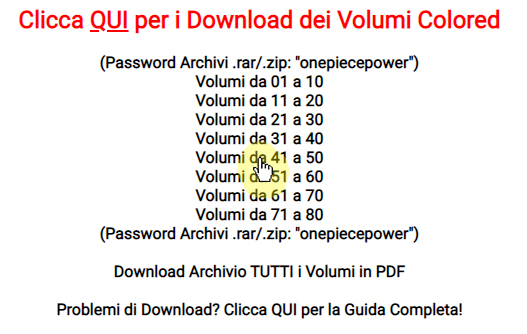 potremo finalmente procedere con il Download dei Volumi Colored di One Piece. Come prima cosa scaricate il file .zip o .rar dal sito cliccando